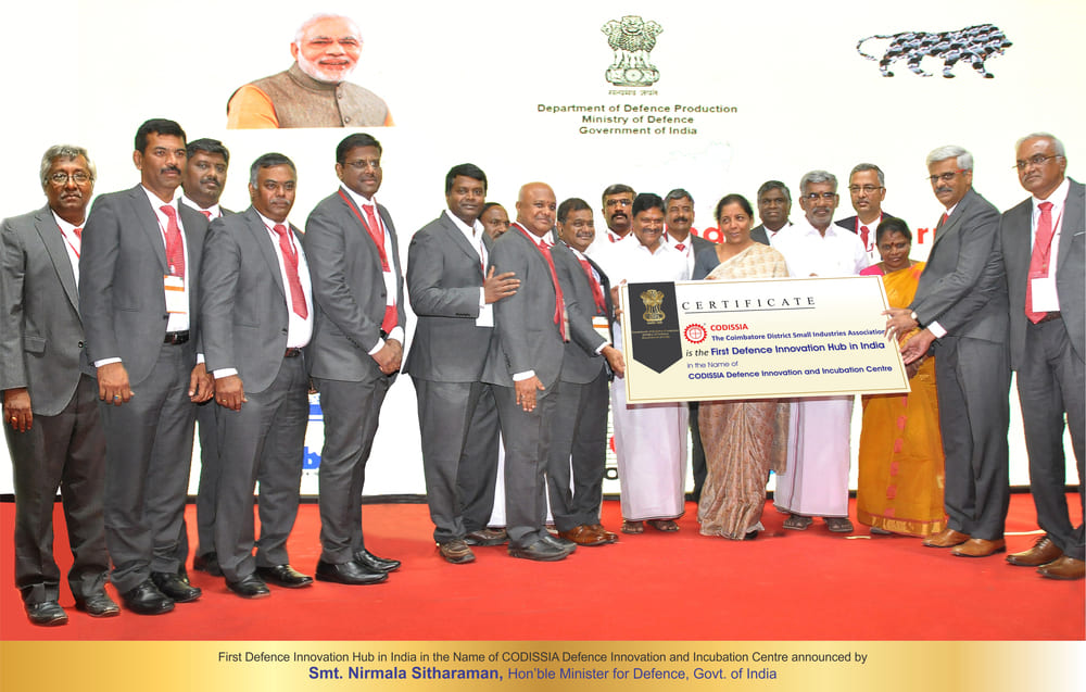 First Defence Innovation Hub in India, named as the CODISSIA Defence Innovation and Incubation Centre, announced by Smt. Nirmala Sitharaman, Hon’ble Minister.
